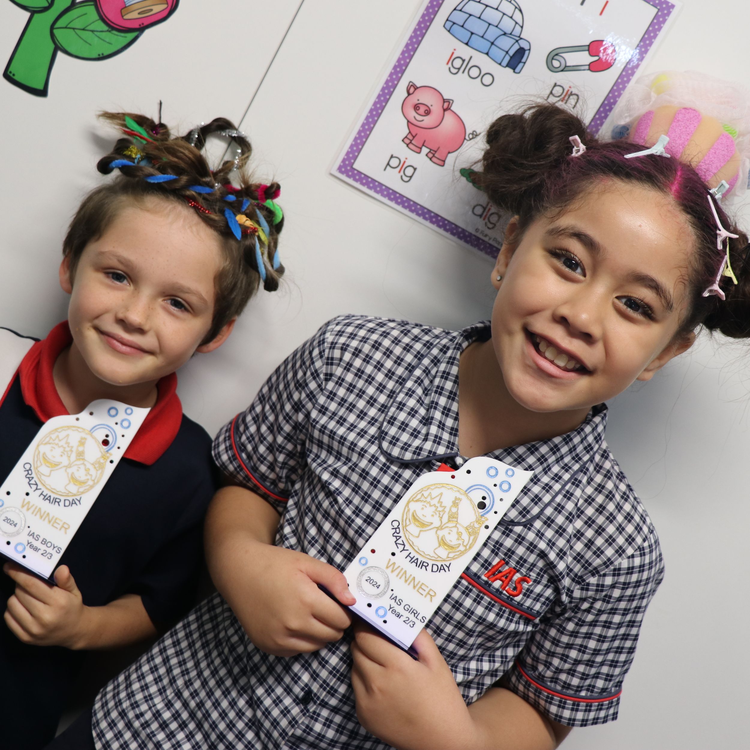 A variety of colours, shapes, and sizes made it challenging to select class winners for their outstanding hair creations. Congratulations to all students (and parents) for their creativity, fun, and support.